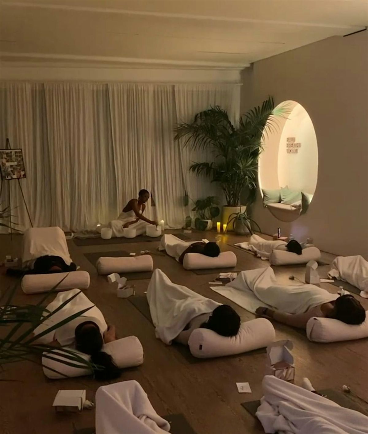 Permission to Pause is a gentle yoga and sound experience created to help you slow down, regulate your nervous system and fully unwind.