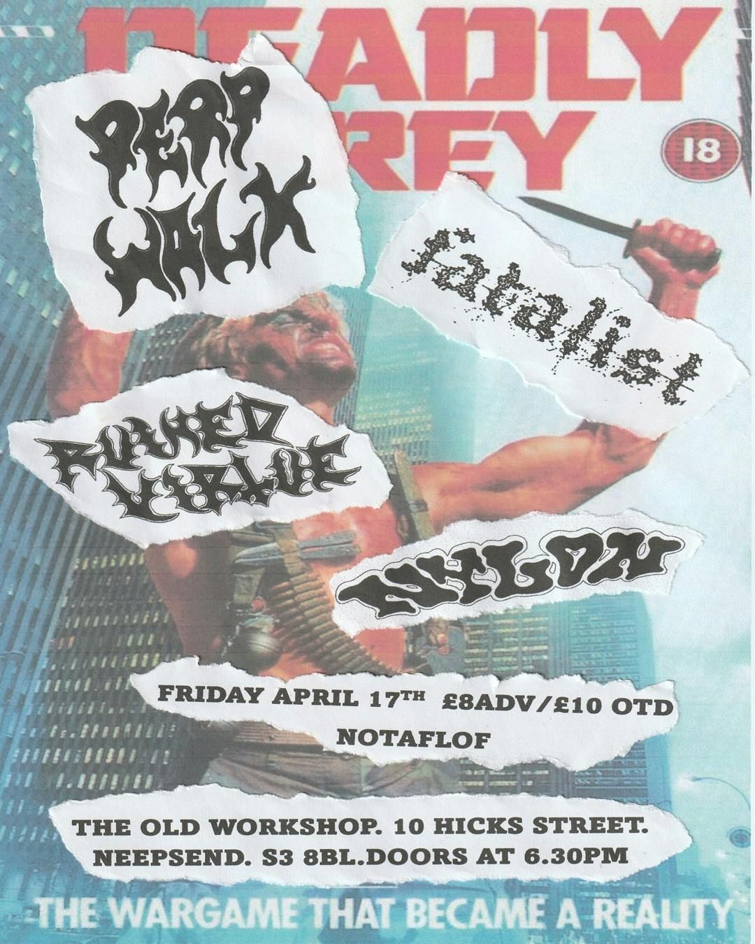 Friday April 17th, Perp walk, Fatalist, Ruined Virtue and Nylon live. Doors 6.30pm. £8 adv. £10 On the Door. Your confirmation email is your ticket, it'll be names on the door.Disclaimer: