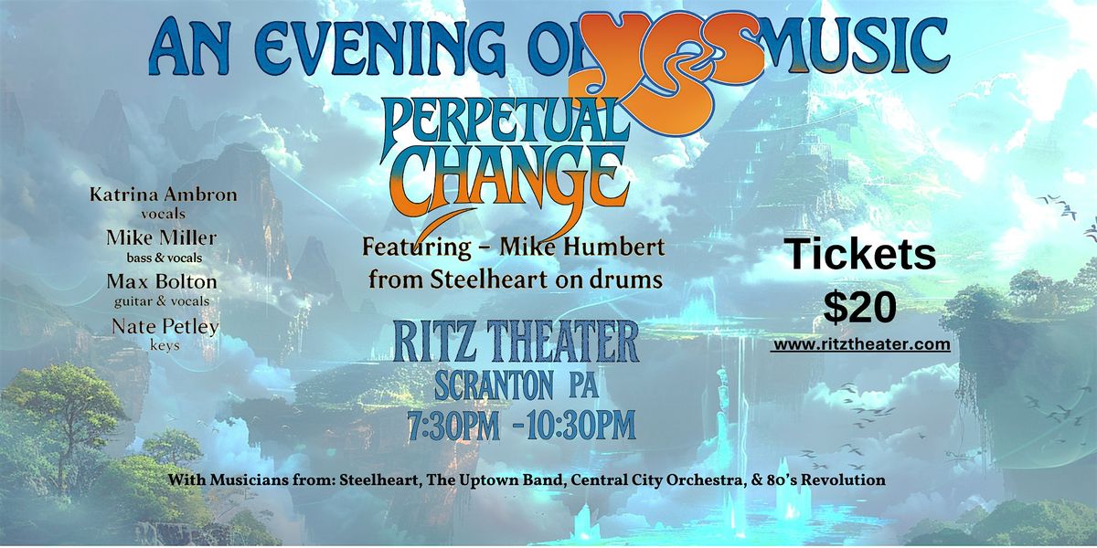 Get ready for an unforgettable night of musicianship and nostalgia as Perpetual Change hits the stage at The Ritz Theater. This all-star ensemble features talent from Steelheart, The Uptown Band, Central City Orchestra, and 80’s Revolution — bringing you a high-energy live performance packed with killer vocals, iconic riffs, and crowd-favorite hits.