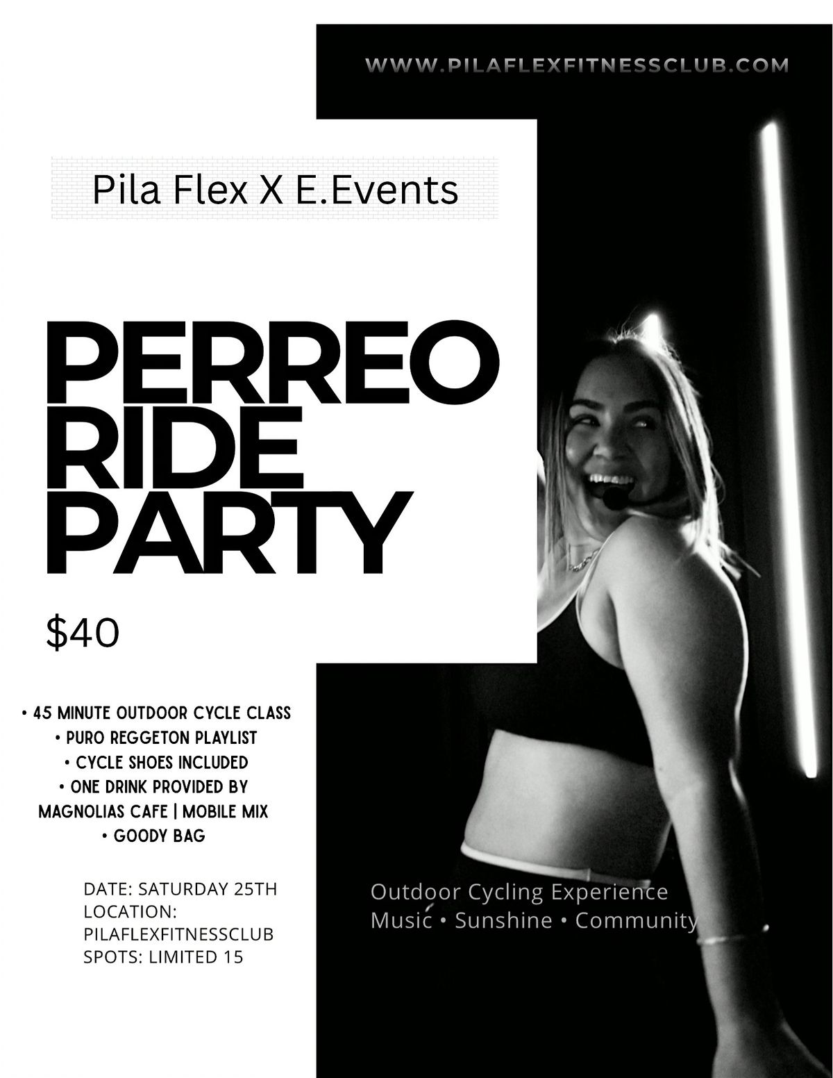 Perreo Ride Party | Puro Reggeton Playlist Outdoor Cycle Class, one free drink included by magnolias cafe or the mobile mix.