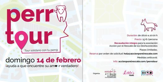 El próximo 14 de febrero, San Valentín ❤, os invitamos al I PERROTOUR solidario en Granada! Se trata de una ruta turística guiada por el Albaicín y Sacromonte a la que puedes venir con tu perro. La recaudación será benéfica íntegramente. ?Toda la info en: https://accionporelrescate.com/perrotour/