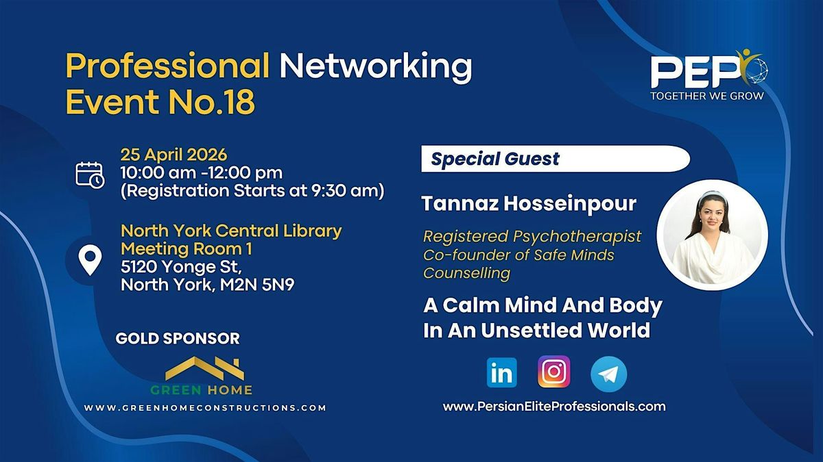Join Persian Elite Professional Networking Event 18! Meet, connect, collaborate & grow with inspiring professionals in friendly atmosphere.About this Event