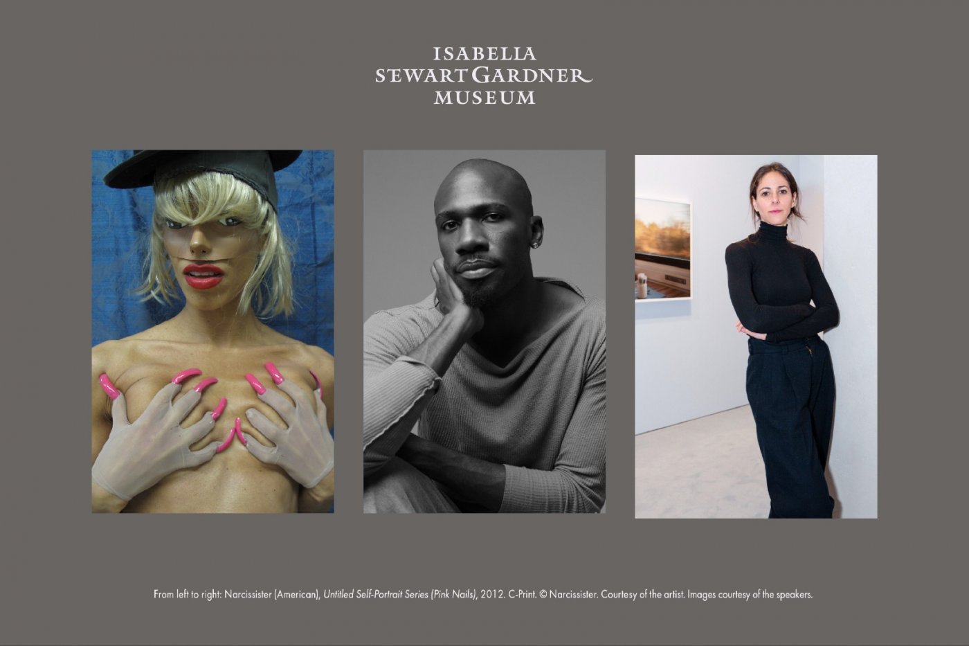 Why does an artist take on a persona? How might the creation and embodiment of a persona be an exploration of the personal, cultural, or political? Deepen your engagement with the Isabella Stewart Gardner Museum's new exhibition, Persona: Photography and the Re-Imagined Self, by joining us for an artistic interrogation of the concept of “persona. ” Co-curators Pieranna Cavalchini and Melissa Harris will begin the conversation by introducing the exhibition and the 30 artists featured within it before turning it over to three of those creatives: Narcissister, Hakeem Adewumi and Jamie Diamond.