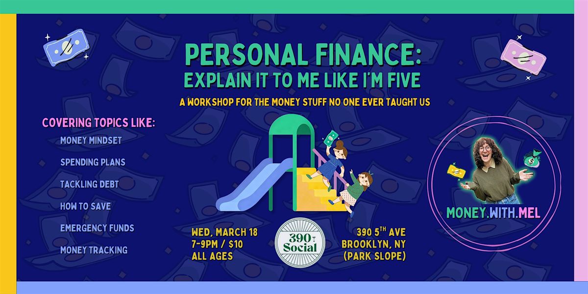This is a beginner level workshop about money mindset, management and methods. It will take place at 390 Social (Park Slope) in their private Speakeasy room (note this is down a flight of stairs!). Ticketed event, space is limited!