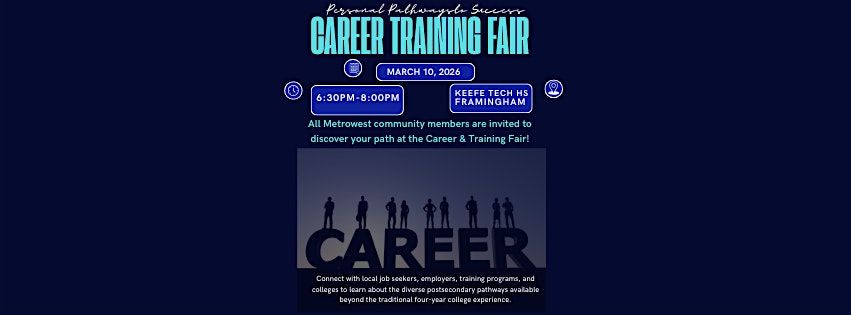 All Metrowest community members are invited to discover your path at the Career & Training Fair! Learn about the opportunities that exist beyond traditional 4 year college. The following domains/trades will be represented: