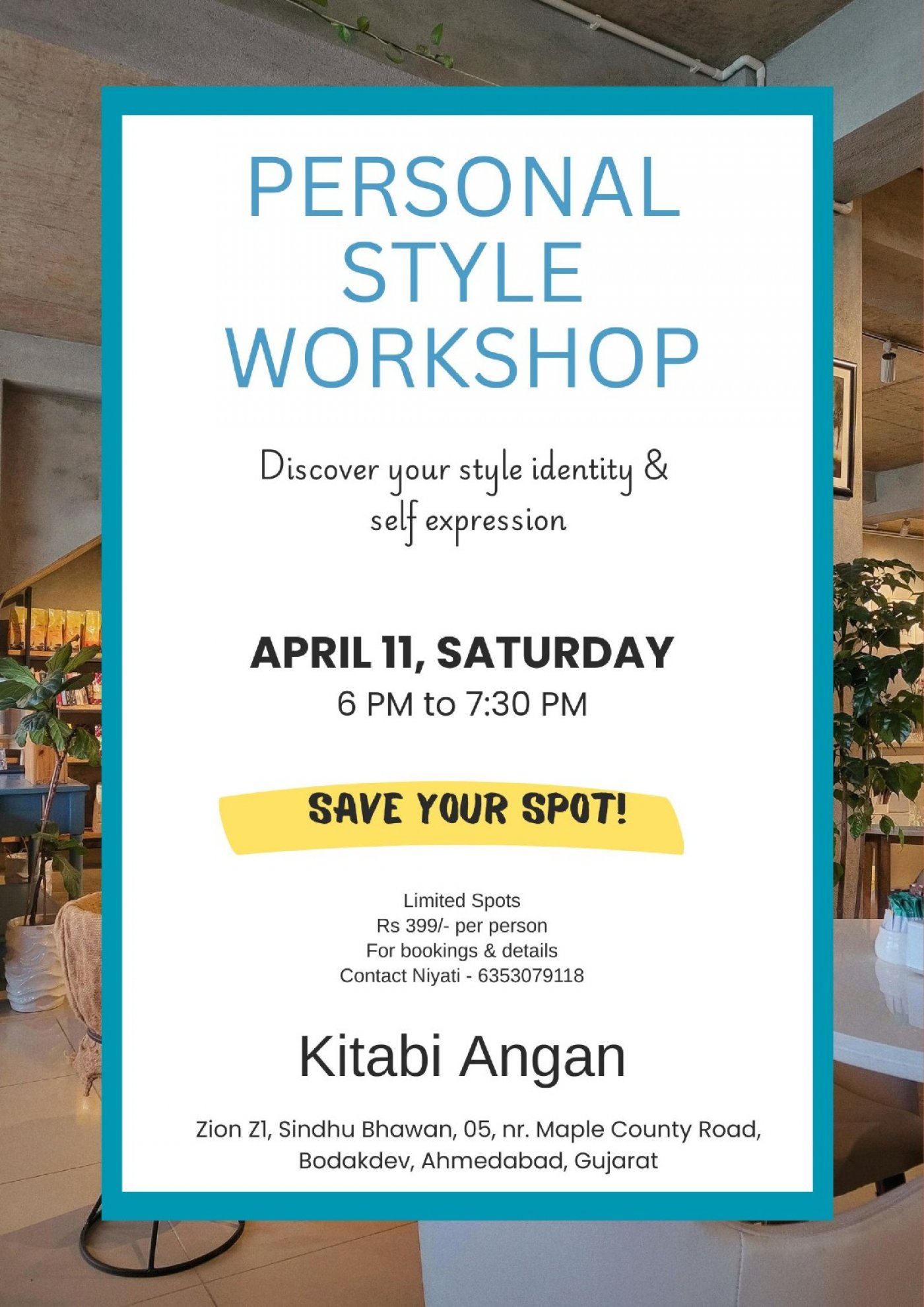 Join us at the Personal Style Workshop on April 11, 2026, at 6:00 PM in the enchanting Kitabi Angan, Bodakdev, Ahmedabad.