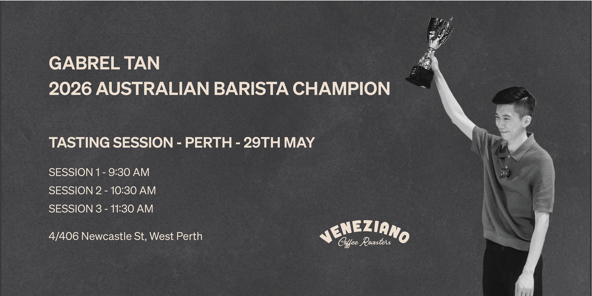 Join us for an intimate 30-minute tasting session where Gab shares the story behind his championship concept, his coffee choices, and the journey that led to the win. Plus, Q&A - ask him just about anything. His technique, his process and what he has planned next.
