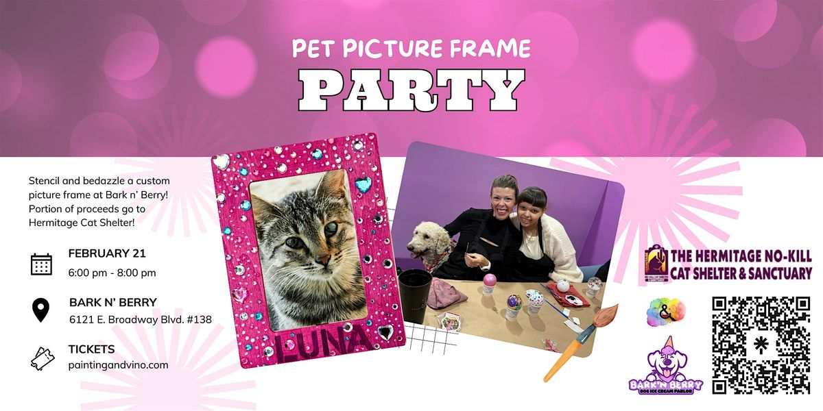 Join us for a Pet Picture Frame Party at Bark n’ Berry! Create a fun, beginner gift and make memories that last. $5/ticket goes to Hermitage Cat Shelter! Whether you have art art experience or are just looking for a meaningful opportunity, this paint class fundraiser promises an approachable, artistic activity for friends, family and couples. Bring your own drinks (BYOB) and snacks!
