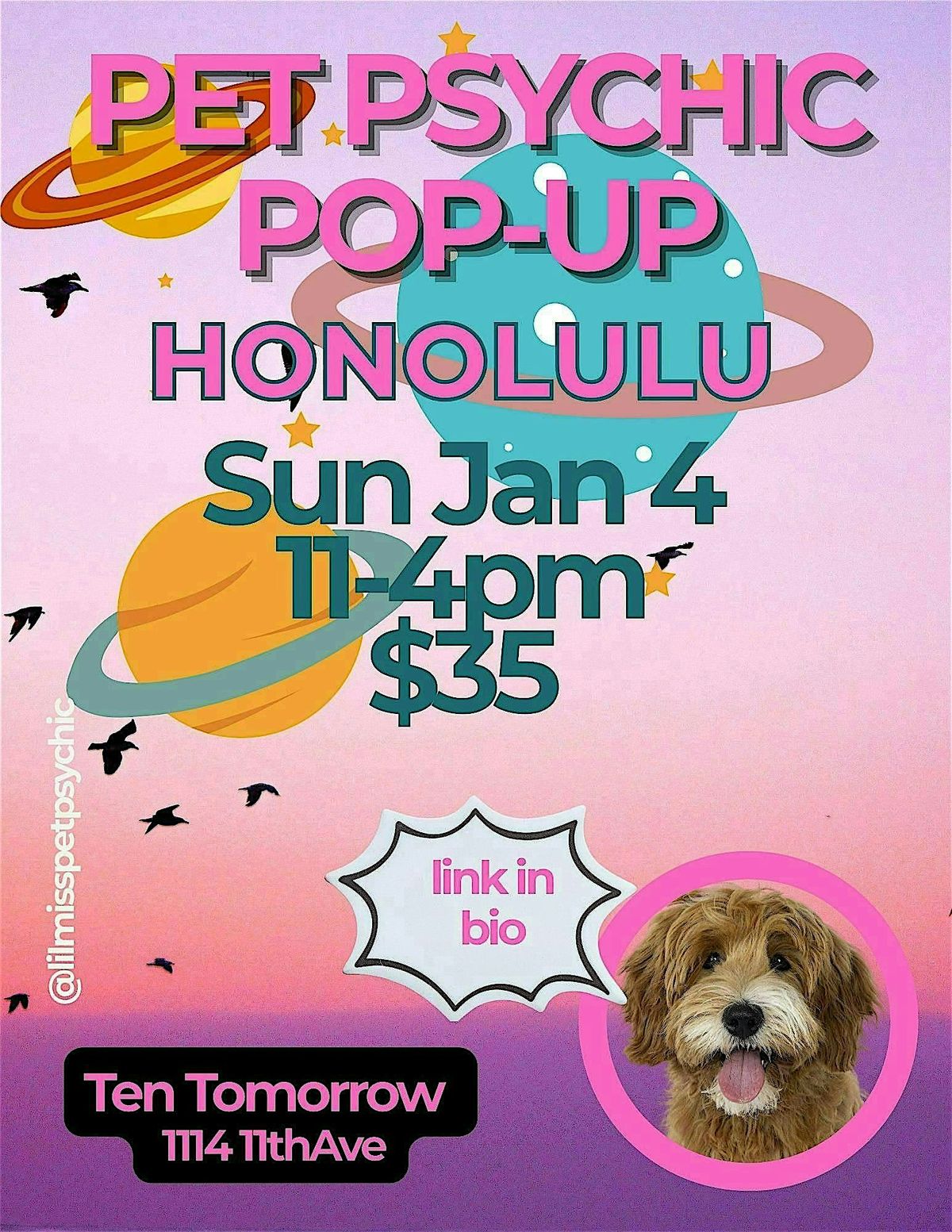 Discover the hidden needs, desires and quirks of your previous pet or pets! No question is too small or big!! Discover what your pet wants more of, less of or anything that you do thats a red flag! Also, get a nose to tail check-up on the condition of each of your pets inner body parts and get solutions too!! One pet, per reading!
