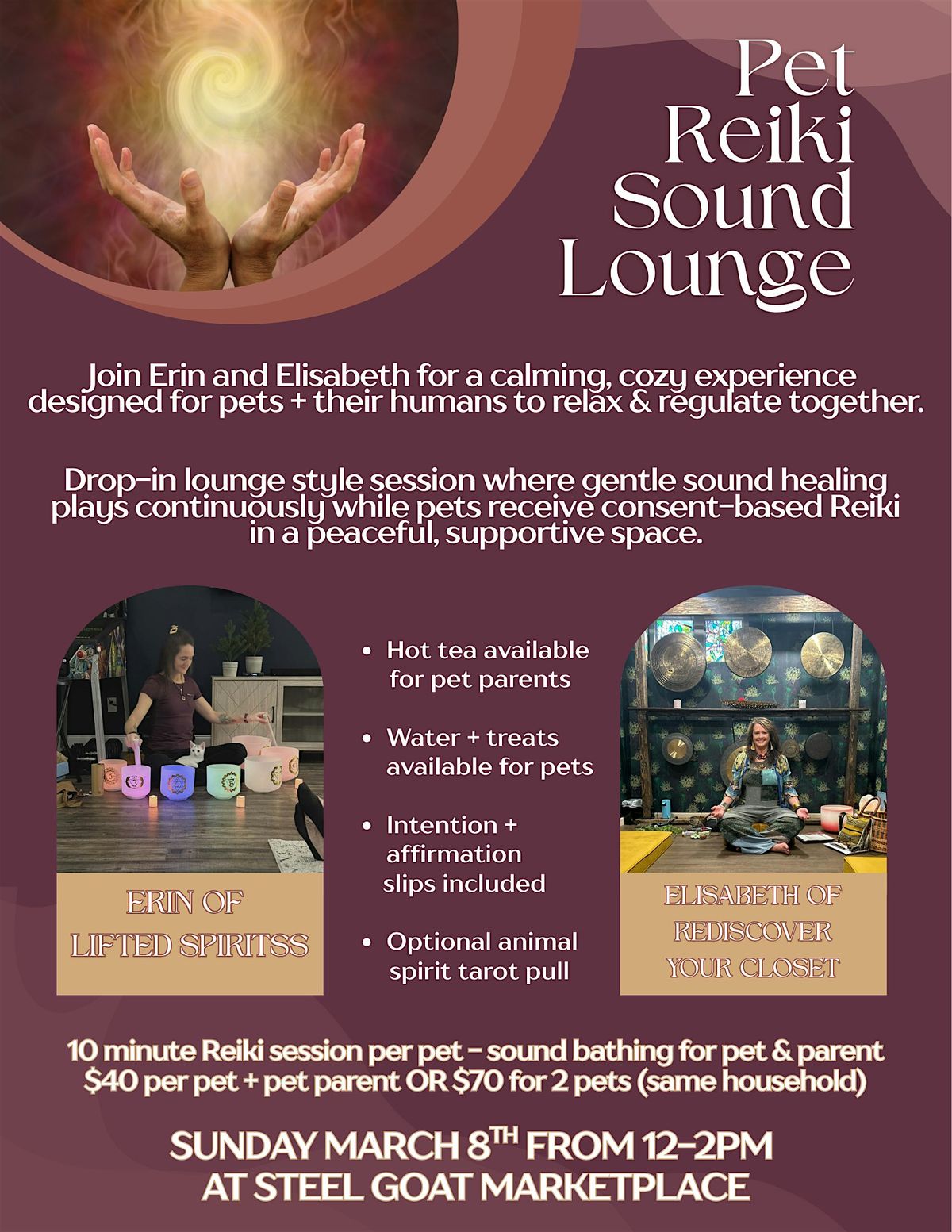 Our Reiki practitioner will offer 10-minute sessions for each pet while the sound healing continues.