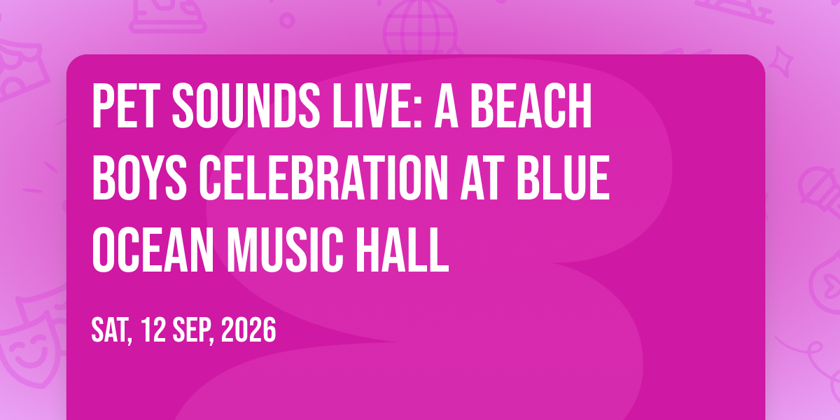🎉 Prepare to be amazed at Pet Sounds Live: A Beach Boys Celebration at Blue Ocean Music Hall, the most anticipated gathering of the season! 🌟 Set against the stunning backdrop of Blue Ocean Music Hall in vibrant Salisbury, MA, this event promises to redefine your expectations. 📅 Mark your calendars for September 12th, 2026 at 08:00 PM and get ready to immerse yourself in an atmosphere of wonder and excitement. ✨ From the moment you arrive, you'll be transported into a world where memories are made and stories come alive. They have crafted an experience that perfectly harmonizes entertainment, innovation, and community spirit. 🌈 Join us as we create moments that will be discussed for years!
