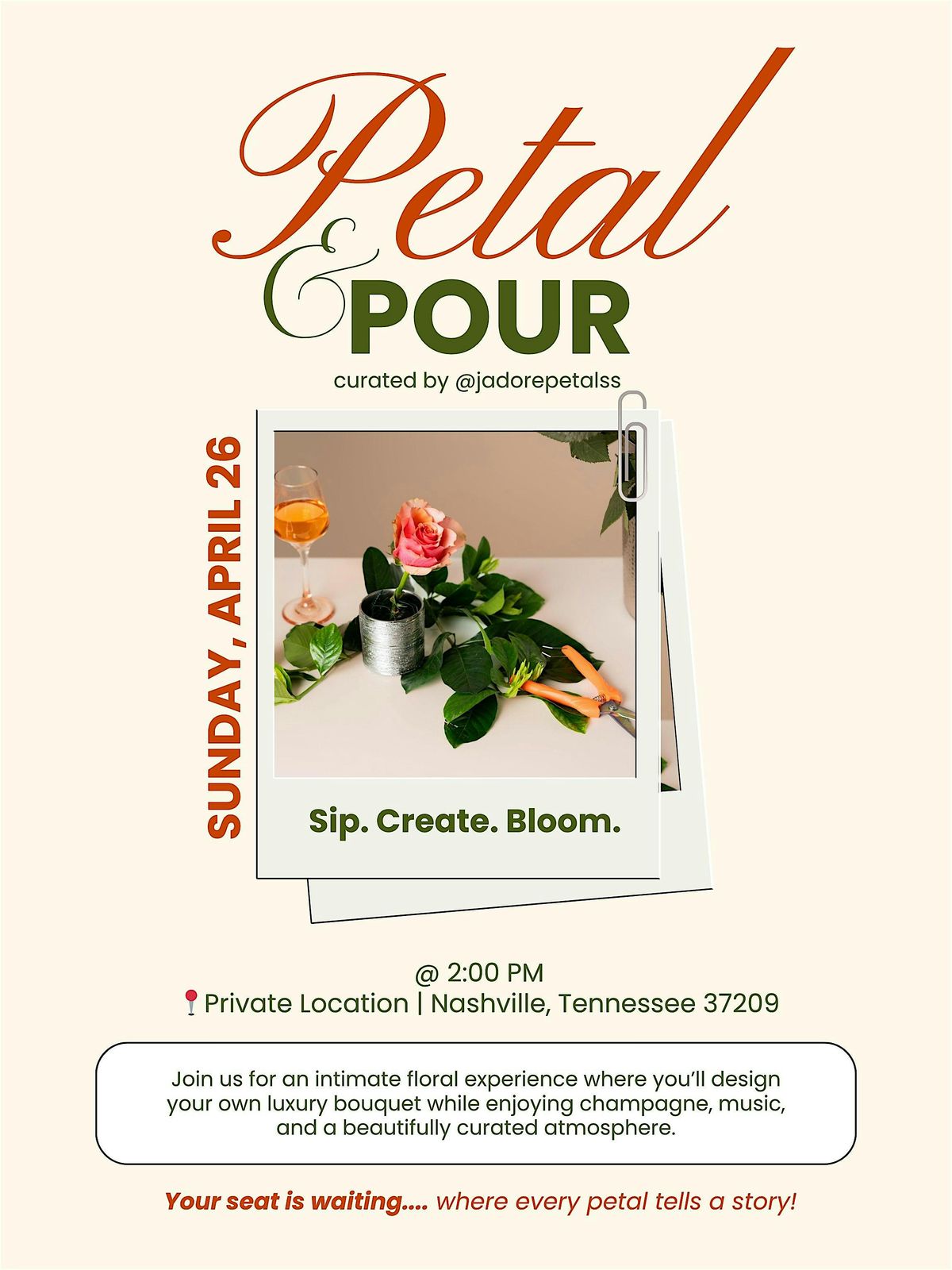 Get ready for an awesome in-person experience where creativity meets fun! Dive into a colorful world of blooms while you sip and relax. Whether you’re a flower enthusiast or just looking for a chill vibe, Petal & Pour is the place to be. Bring your friends, unleash your inner artist, and make some beautiful memories. Can’t wait to see you there!