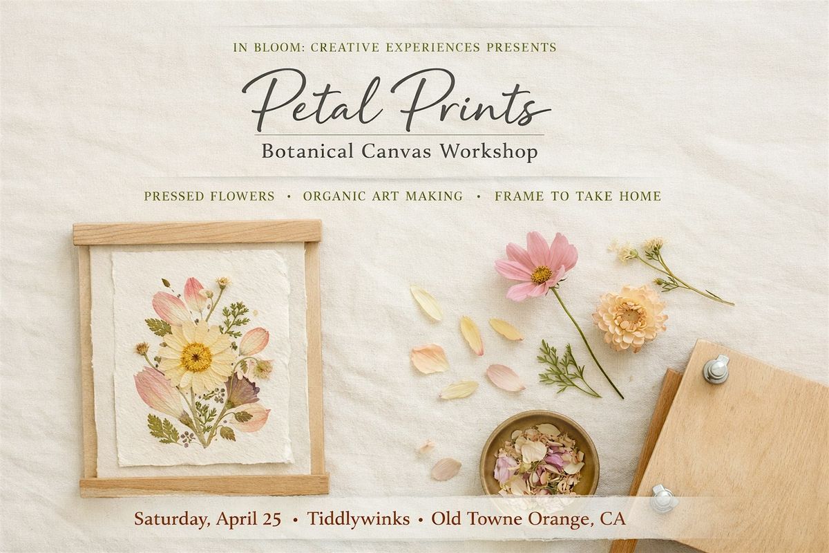 Petal Prints is a design-forward workshop where you’ll use real flowers to create soft botanical artwork using natural pigment pressing, then frame your piece to take home.