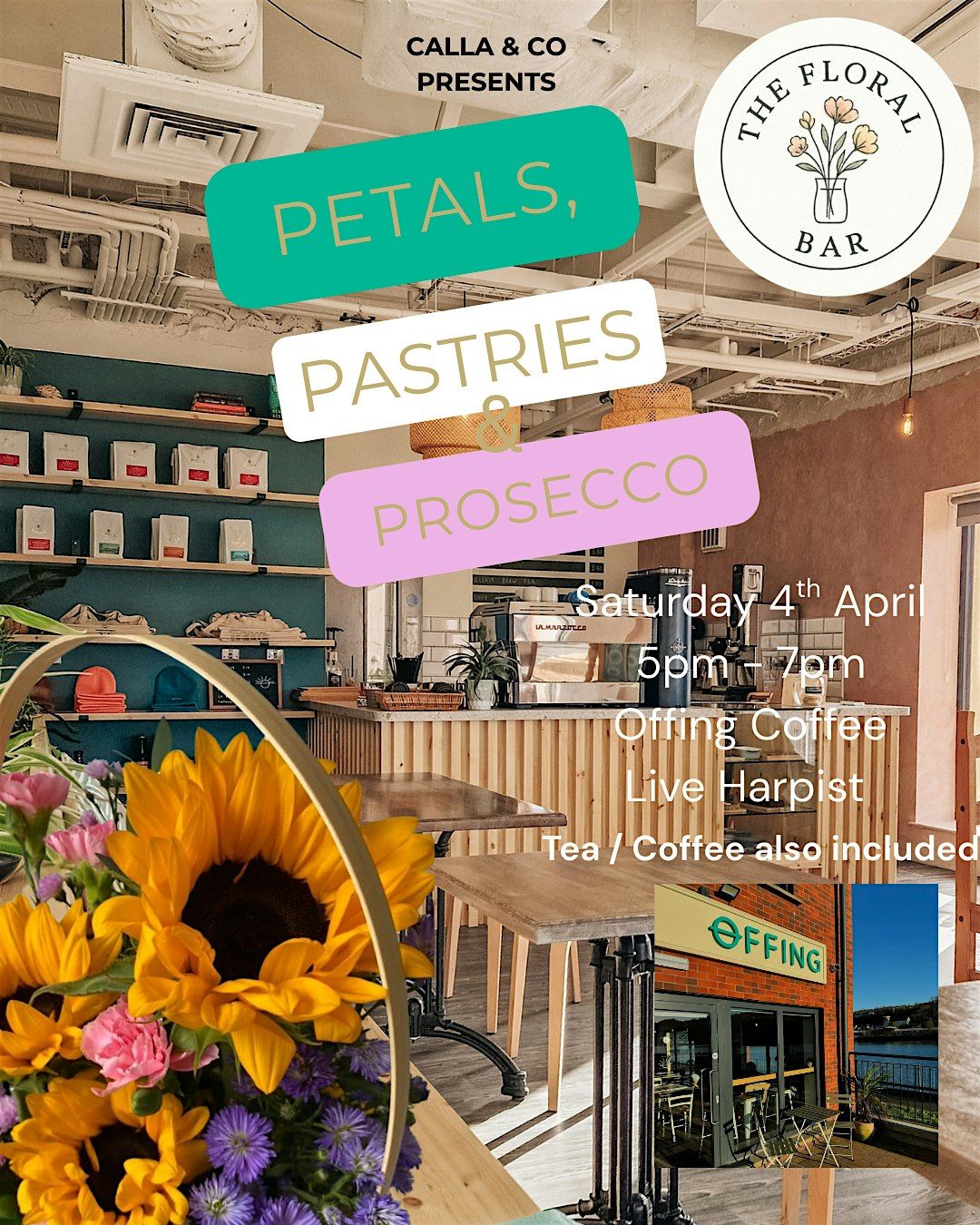 Hands on workshop to create a beautiful Easter Floral basket. Take in the views from Offing. Pastry, Prosecco, Tea / Coffee provided.