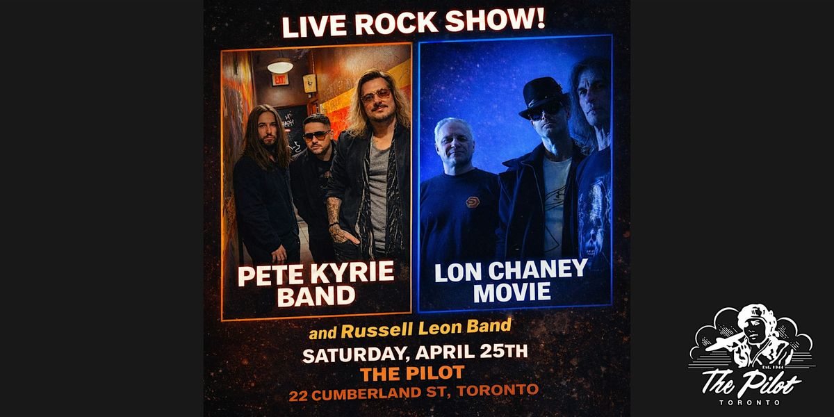 Catch Pete Kyrie Band, Lon Chaney Movie, and Russell Leon Band bringing raw guitars, big hooks, and no-nonsense rock & roll to the Pilot stage.