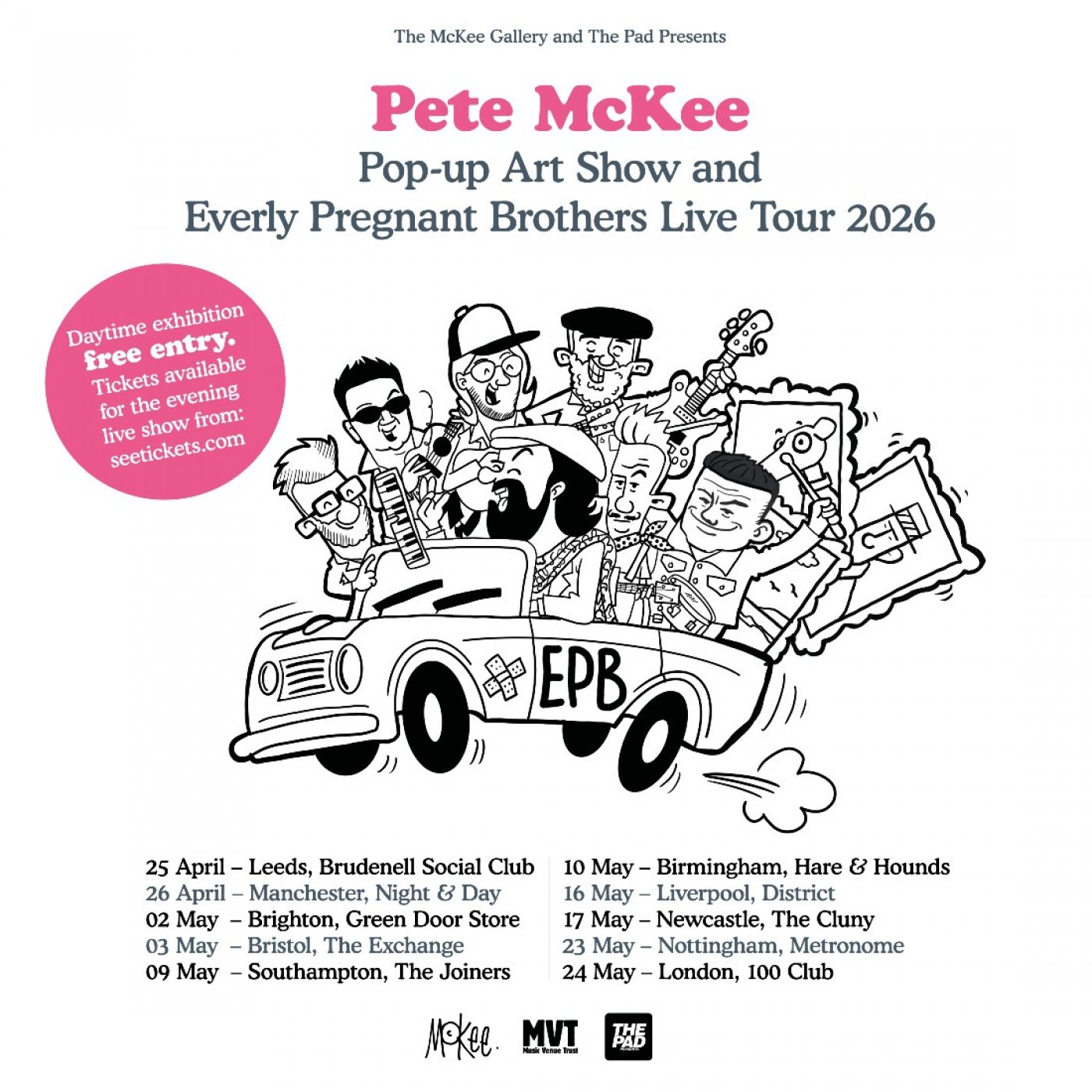 As well as a showcase of Pete’s artwork, the tour is also to raise awareness of the work Music Venue Trust do in helping to support our grassroots live music venues, the lifeblood of touring for new emerging artists.