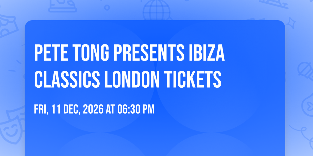 Pete Tong at The O2 Arena🎉 Welcome to Pete Tong Presents Ibiza Classics London Tickets, where the impossible becomes possible and dreams take flight! 🏛️ Join us at The O2 Arena in the heart of London, EN for an event that will redefine your expectations. 📅 On December 12th, 2026 at 06:30 PM, witness the transformation of space and time into something truly magical. ✨ It's a curated experience combining the best of innovation, entertainment, and community spirit, creating moments that will be remembered for years to come. Whether you're a first-time visitor or a seasoned enthusiast, prepare to be amazed. 💫 Book now at 185.36 EUR. 🎊 Book now to ensure your place in this unforgettable experience!