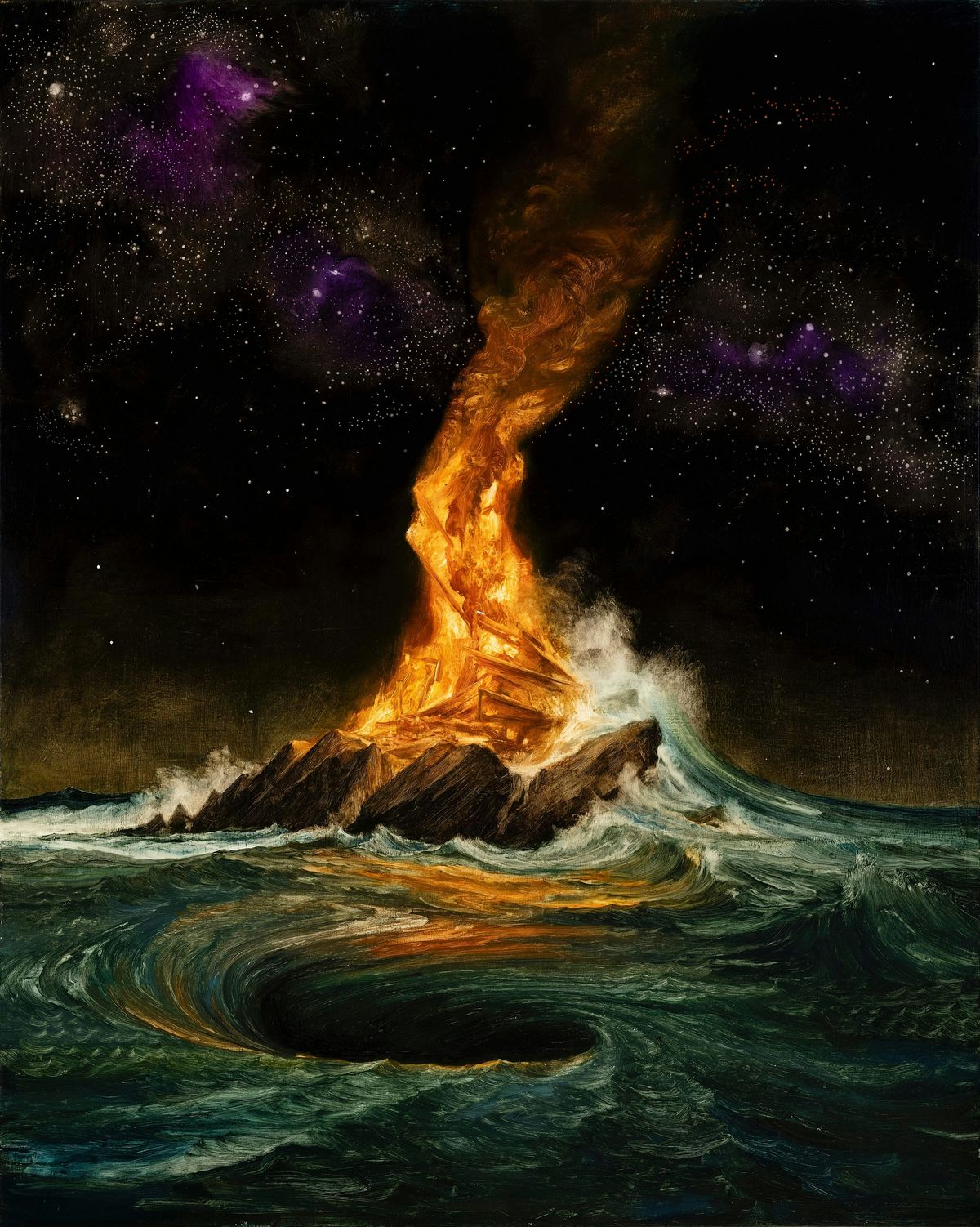For more than four decades, Peter Gardiner has pursued a painting practice grounded in direct encounter with the elemental forces of the natural world. DEAD RECKONING brings this lifelong engagement with water and fire into sharp focus, balancing on the delicate threshold between chaos and clarity.