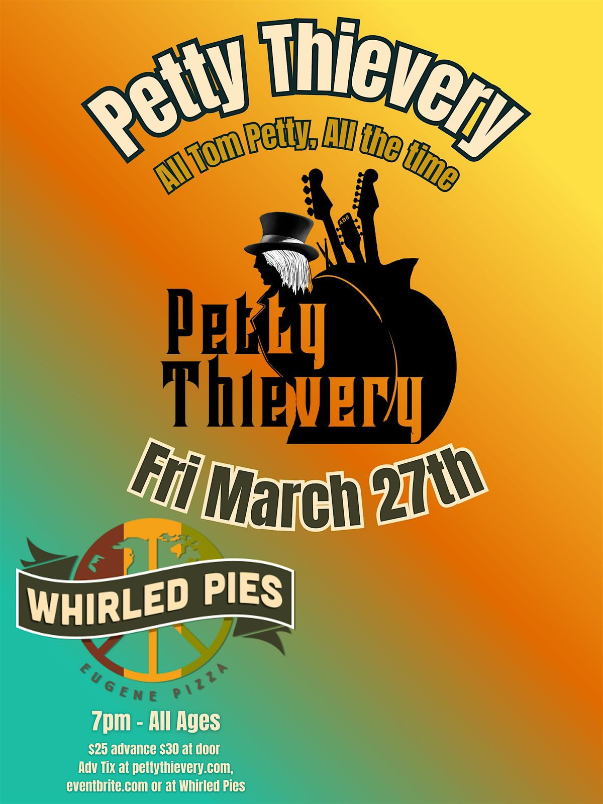 In the late 90's Bret Levick co-created and fronted L.A. indie breakout band Gifthorse. His hooky songs have appeared in hundreds of trailers, commercials, video games, feature films and TV shows including Sons Of Anarchy, Lucifer and Shameless. He currently writes, produces and mixes music out of his Talent, Oregon studio and performs live with his original rock/americana band, LEFT.Alice Di Micele has had a 40 year career as a singer/songwriter and troubadour known for her moving songs, emotive, soulful voice and groovy guitar stlyle. Having released 18 albums on her indie label Alice Otter Music, she continues to tour as a solo artist and with her band Force of Nature.Ohio native Gene Black first made a name for himself in Detroit rock clubs and recording studios. While still in his teens, he recorded with Chicago blues legend Luther Allison, at Motown's iconic facility: Hitsville USA. Highlights include 15 years as Joe Cockers lead guitarist, multiple recording sessions with Tina Turner and co writer on top 10 hit songs for Rod Stewart and “Heart."Mark Thomas is a "meat and potatoes" kind of keyboardist: piano, electric piano, and B3 organ. Formal training in piano wasn't as fun as gigging, so Mark has been on a quest to experience the energy of live performance as much as possible both on keys and as a live sound engineer and recordist. Mark has been on stage and in the studio with many of his musical heroes including: Craig Chaquico, Justin Hayward, John Mayall, Stanton Moore, Leon Russell, The Subdudes, Robin Trower, Jeff Pevar, Alice DiMicele, and Bret Levick to name a few. Mark brings a soulful sense of rock and blues keyboards to Petty Thievery that harkens the style of Benmont Tench.Bassist Jeff Addicott is one of the region’s busiest freelance musicians. He studied popular music performance at Mount Royal College in Calgary, Alberta before moving to Oregon in 1996. He currently performs with a wide variety of groups & artists, including: Sage Meadows, Jimmy Pinwheel, Modern Prometheus, Salsa Brava, Q&A, The Wild Goose Chase Trio, Robby DeCosta, & Danielle Kelly.Matthew Kriemelman is most prominently known as a veteran drummer for the blue man group in Las Vegas from 2000-12, and has performed in the New York and Chicago productions. Matthew honed his skills in NYC’s downtown club scene for 10 years beginning at the age of 18 at iconic clubs such as CBGB’s, China Club, Limelight and the Marquee. Since moving to the Rogue Valley Matthew has become the go-to first-call drummer for studio sessions, local musicians, and producers like Jeff Pevar and Sylvia Massey.