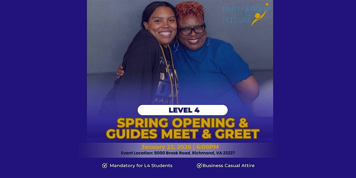 Partnership for the Future Level 4: Spring Opening & GUIDES Meet & GreetAbout this Event