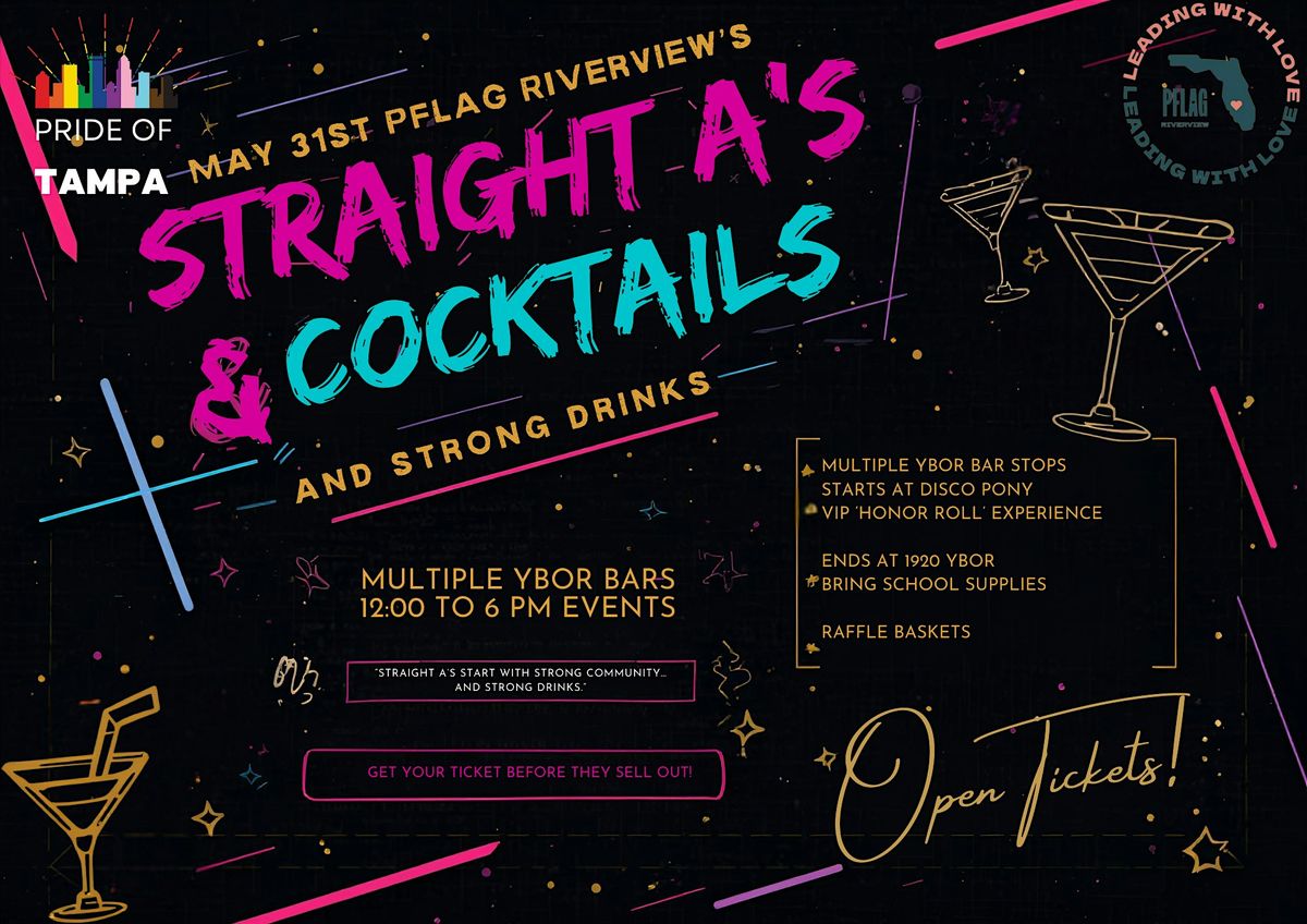 Join PFLAG Riverview for a fun night of drinks and laughs at the Straight A’s & Cocktails Crawl!