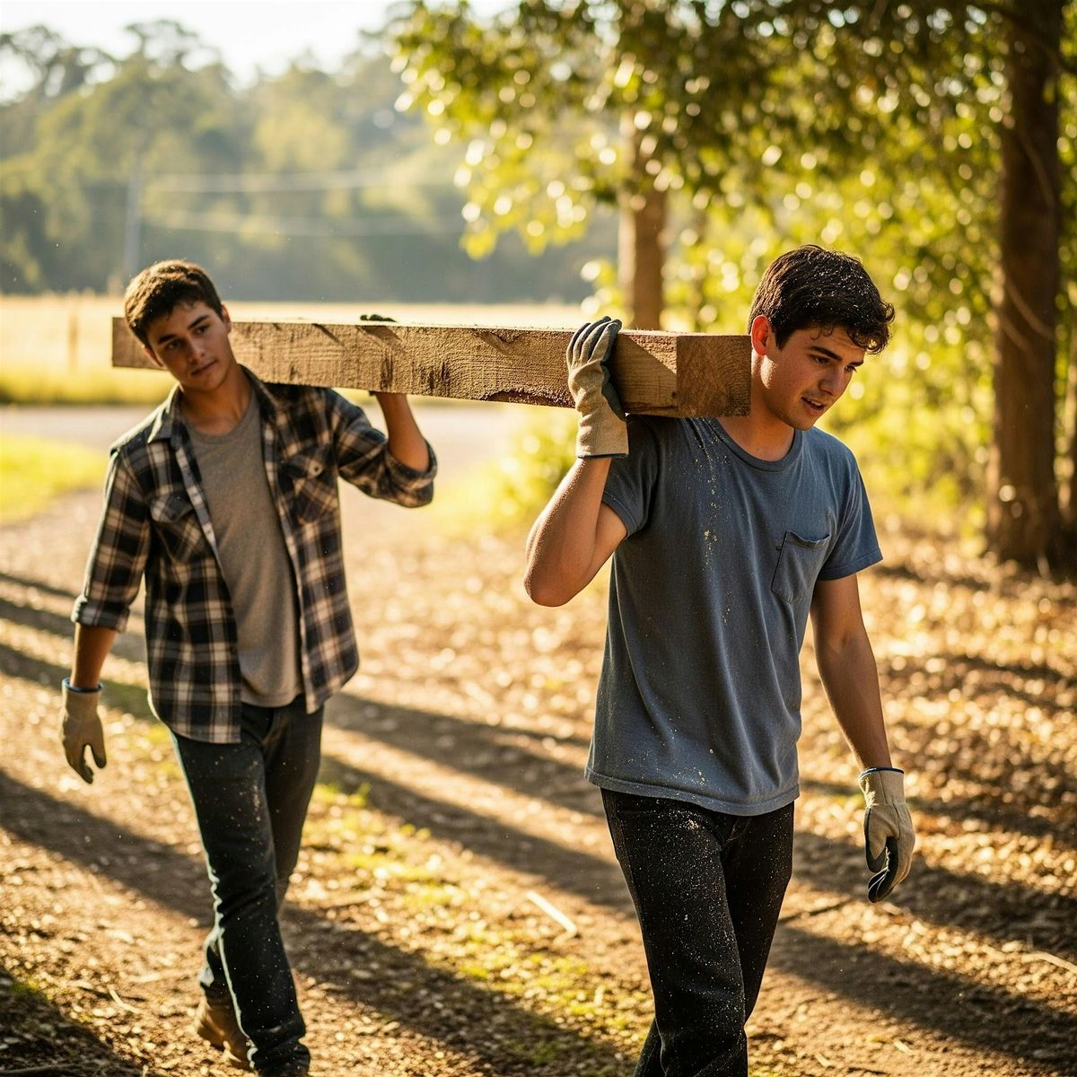 Work gloves, sturdy boots or shoes, long pants recommended to avoid splinters and scrapes, water to drink.