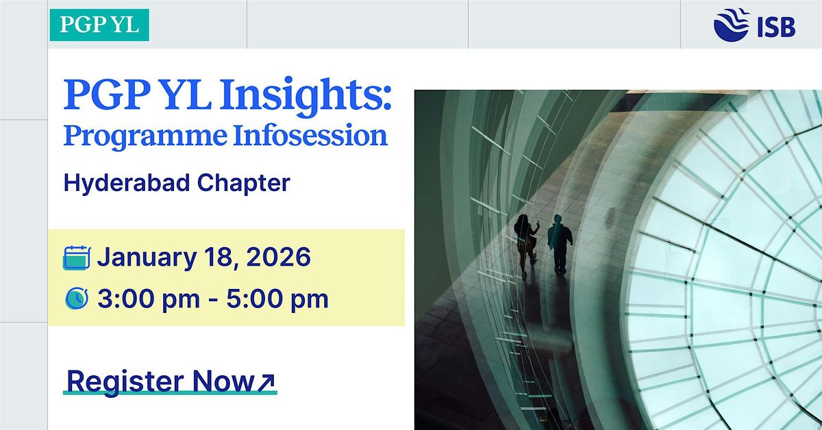 Join us for an interactive session and discover how ISB's Post Graduate Programme in Management for Young Leaders (PGP YL) can transform your career. Led by the ISB Admissions Team, this session will provide an overview of the programme’s structure, academic experience, and application process, equipping you with the insights you need to take the next step.