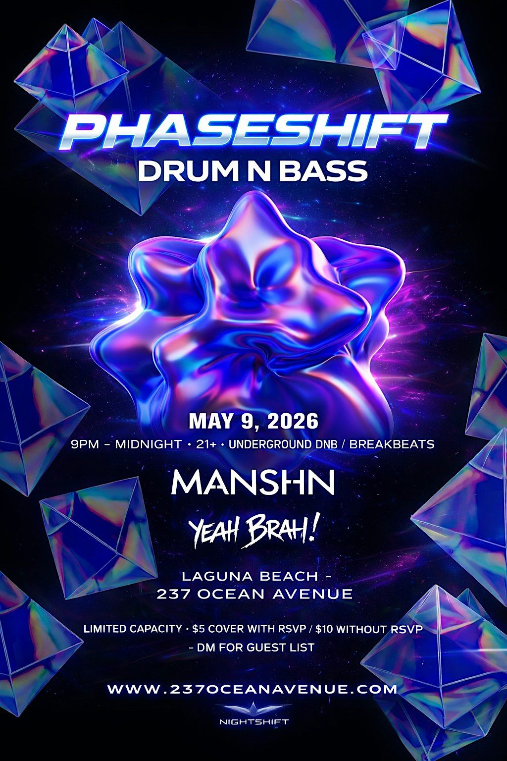 Join us in Laguna Beach for an epic Underground DnB experience. This is an in-person night packed with heavy bass, sick beats, and all the vibes you crave. Whether you’re a drum & bass fanatic or just looking to discover something fresh, Phaseshift is where the party’s at. Don’t miss out on an unforgettable night of rhythm and energy!