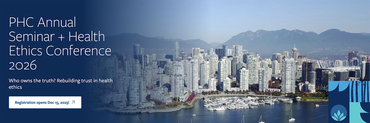 Welcome to the PHC Annual Health Ethics Seminar happening at YWCA Hotel Vancouver from April 21 - 23, 2026 and then for the Health Ethics Conference on April 24, 2026 at the Morris J Wosk Centre for Dialogue all taking place in beautiful downtown Vancouver, BC, Canada