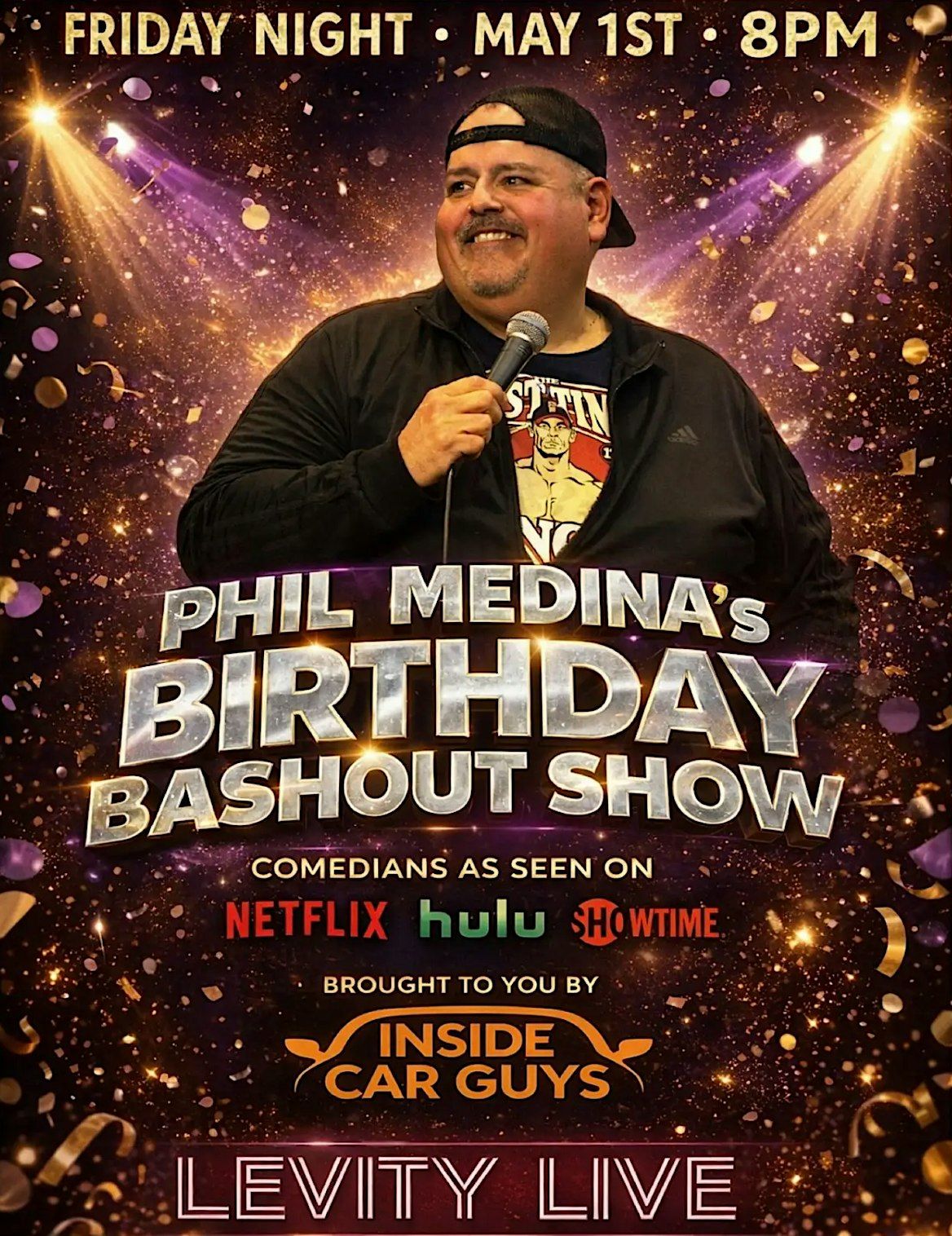 Celebrate with PHIL MEDINA at Levity Live! Phil's a nationally touring comic who frequently receives standing ovations after his performances. You're going to laugh your fanny off as he performs with a cast of his funny friends.