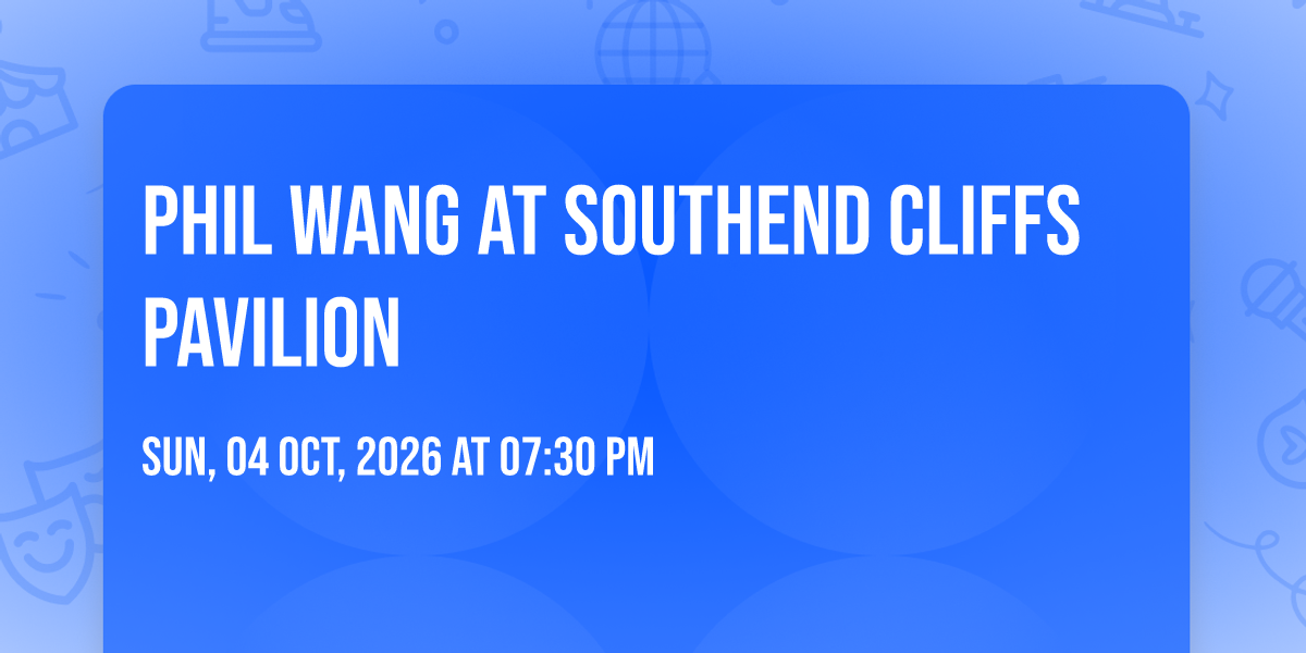 ✨ Embark on an extraordinary journey at Phil Wang at Southend Cliffs Pavilion, where every moment promises to be unforgettable! 🌟 Imagine of transforming Southend Cliffs Pavilion in the heart of Southend-on-Sea, EN into a realm of endless possibilities. 📅 Join us on October 4th, 2026 at 07:30 PM for an experience that will challenge your imagination and exceed your expectations. 🎯 This carefully curated event combines the finest elements of entertainment, innovation, and community spirit. Whether you're an adventure seeker, culture enthusiast, or someone looking for unique experiences, this event offers something special for everyone. 🎊 Don't miss this chance to be part of something extraordinary!