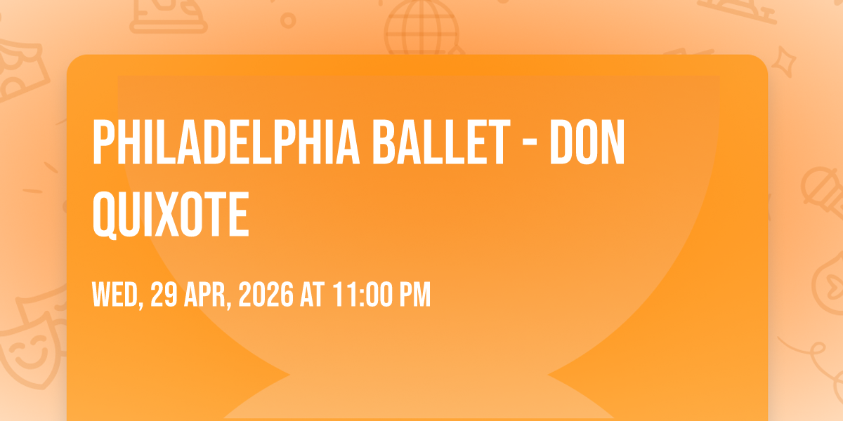 π Location: 39.9468, -75.1654β¨ Embark on an extraordinary journey at Philadelphia Ballet - Don Quixote, where every moment promises to be unforgettable! π Imagine of transforming Academy of Music - Philadelphia in the heart of Philadelphia, PA into a realm of endless possibilities. π Join us on May 8th, 2026 at 09:00 PM for an experience that will challenge your imagination and exceed your expectations. π― This carefully curated event combines the finest elements of entertainment, innovation, and community spirit. Whether you're an adventure seeker, culture enthusiast, or someone looking for unique experiences, this event offers something special for everyone. π Don't miss this chance to be part of something extraordinary!