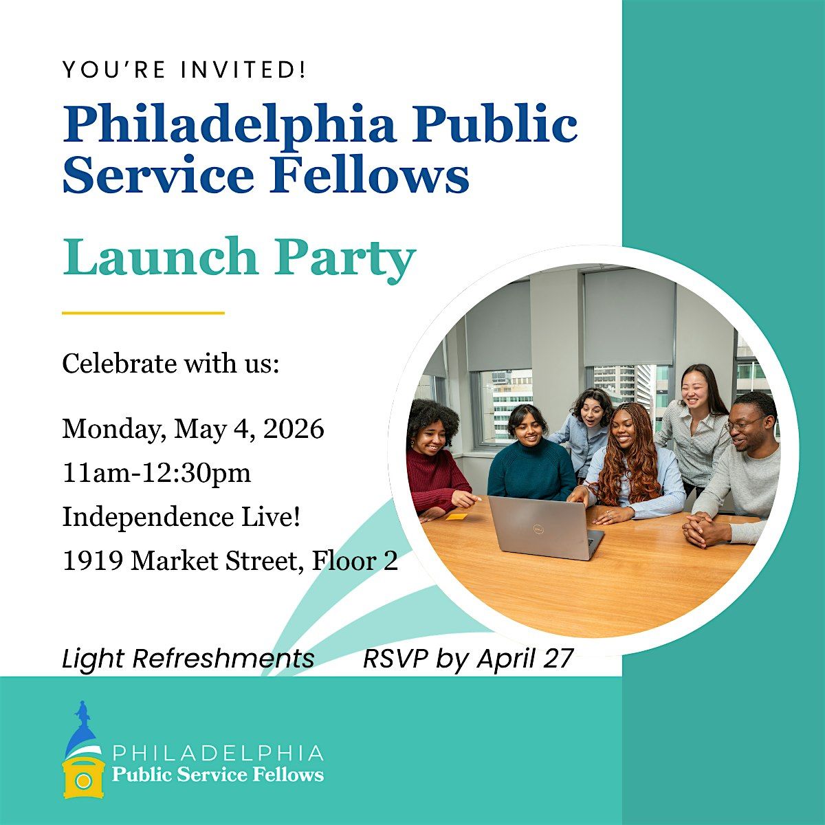 You'll have the opportunity to learn more about the Philadelphia Public Service Fellows and to network with trusted friends of the program, city staff, AmeriCorps alumni, and potential candidates. Lites bites and refreshments will be served. Please RSVP by April 27. We look forward to seeing you!
