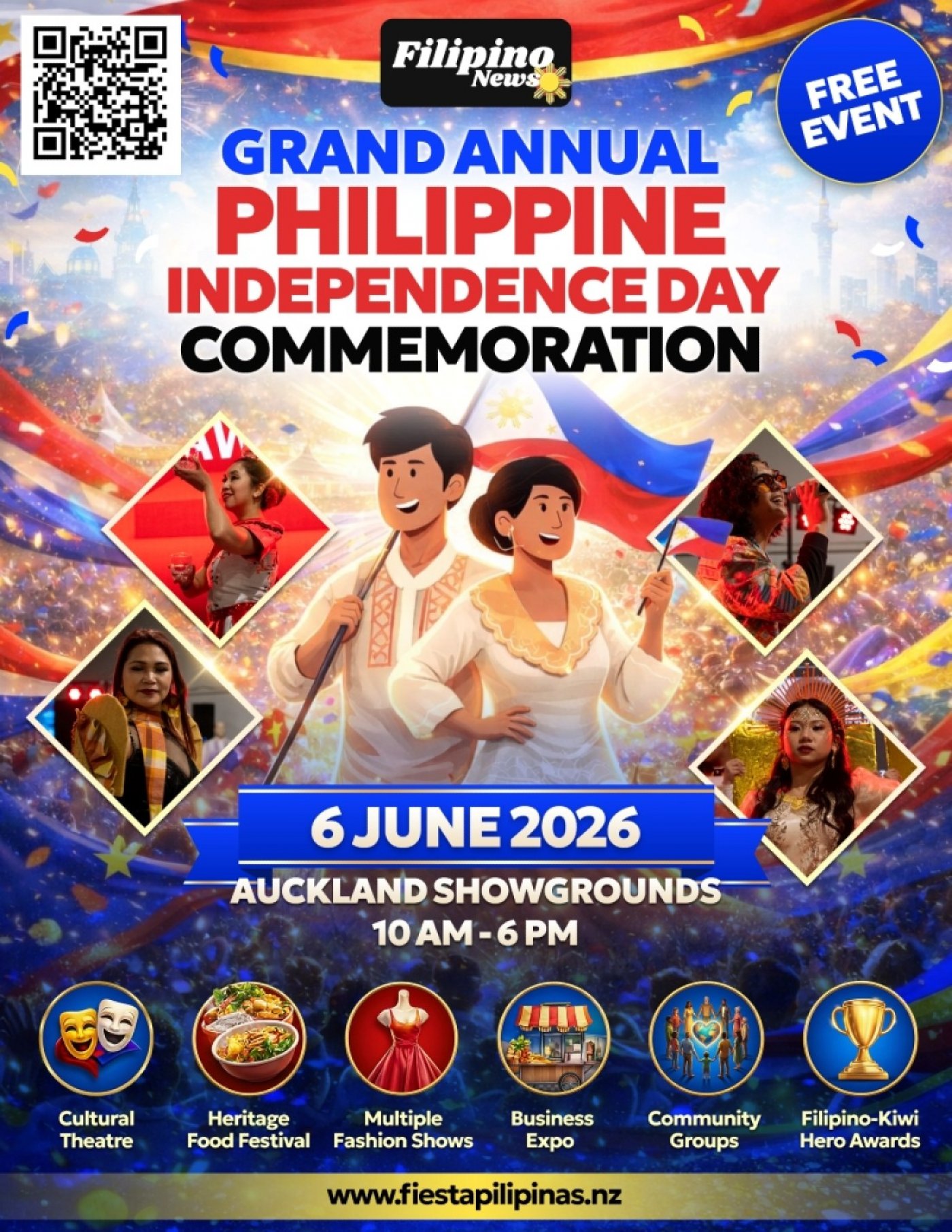Auckland’s BIGGEST Filipino Festival & Business Expo in 2026 is The Grand Annual Philippine Independence Day Celebration at Auckland Showgrounds on 6th June. 10am-6pm. FREE ENTRY.