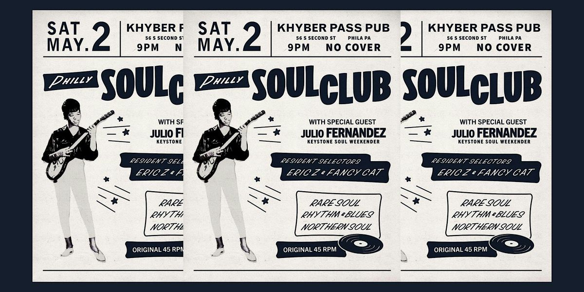 Experience world-class floor shakers and magical rarities on the Khyber Pass dance floor. This month, we welcome back a Philly Soul Club favorite, Julio Fernandez of the iconic Keystone Soul Weekender!