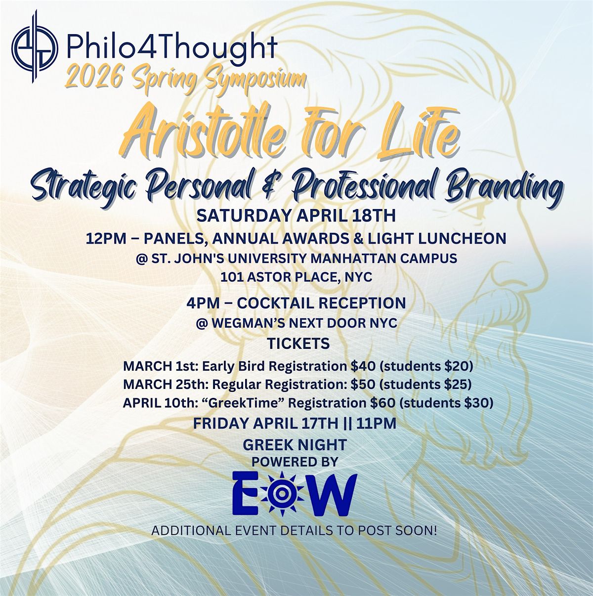 Join the parea at Philo4Thought Hellenic Mentoring Initiative at St. John's University Manhattan Campus on April 18th for our annual Spring Symposium and Awards Ceremony!