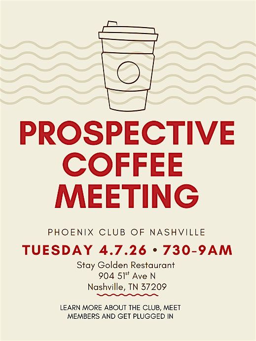 Phoenix Club's impact is built on the strength of its relationships and the strong engagement of its members. Join us for our second prospective coffee of 2026 to meet members and fellow prospectives to make new connections, strengthen existing ones and learn of ways to make a lasting impact through being a part of the organization.