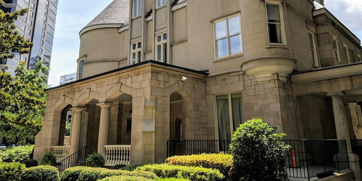 The Wimbish House, an eclectic French Renaissance Revival-style home has ornamented the intersection of Peachtree and 14th Street since 1906. The house is a designated national, state and city historic landmark located in the heart of Midtown and sits on what was once known as “Mansion Row.” Designed in the Chateauesque style by W.T. Downing, prominent Atlanta attorney William A. Wimbish commissioned the home to showcase his family’s social standing. Downing is known for many notable buildings around Atlanta, including the Gothic-Revival Healey Building, the Romanesque-Revival Church of the Sacred Heart, and Lupton Hall at Oglethorpe University, among other structures.