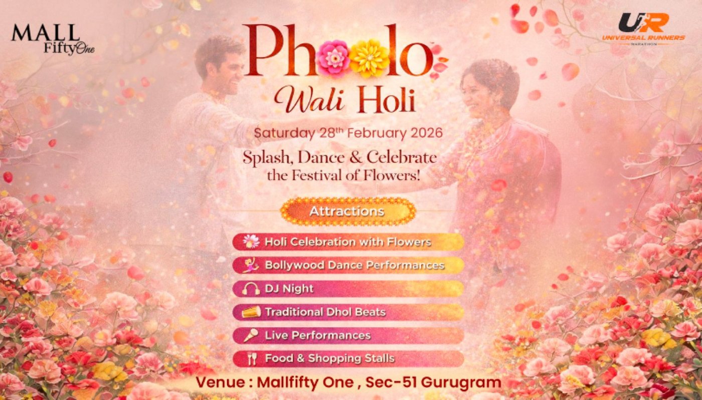 A family-friendly Holi celebration with live music, dance performances, and a variety of food & Shopping stalls at Mallfifty One .
