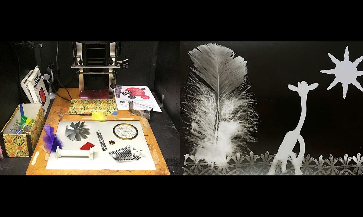 This is a fun introduction to the darkroom class. Students place objects on photographic paper and expose them to light, then develop the paper in our darkroom. The unusual combinations are personal expressions that utilize the student’s intuition.