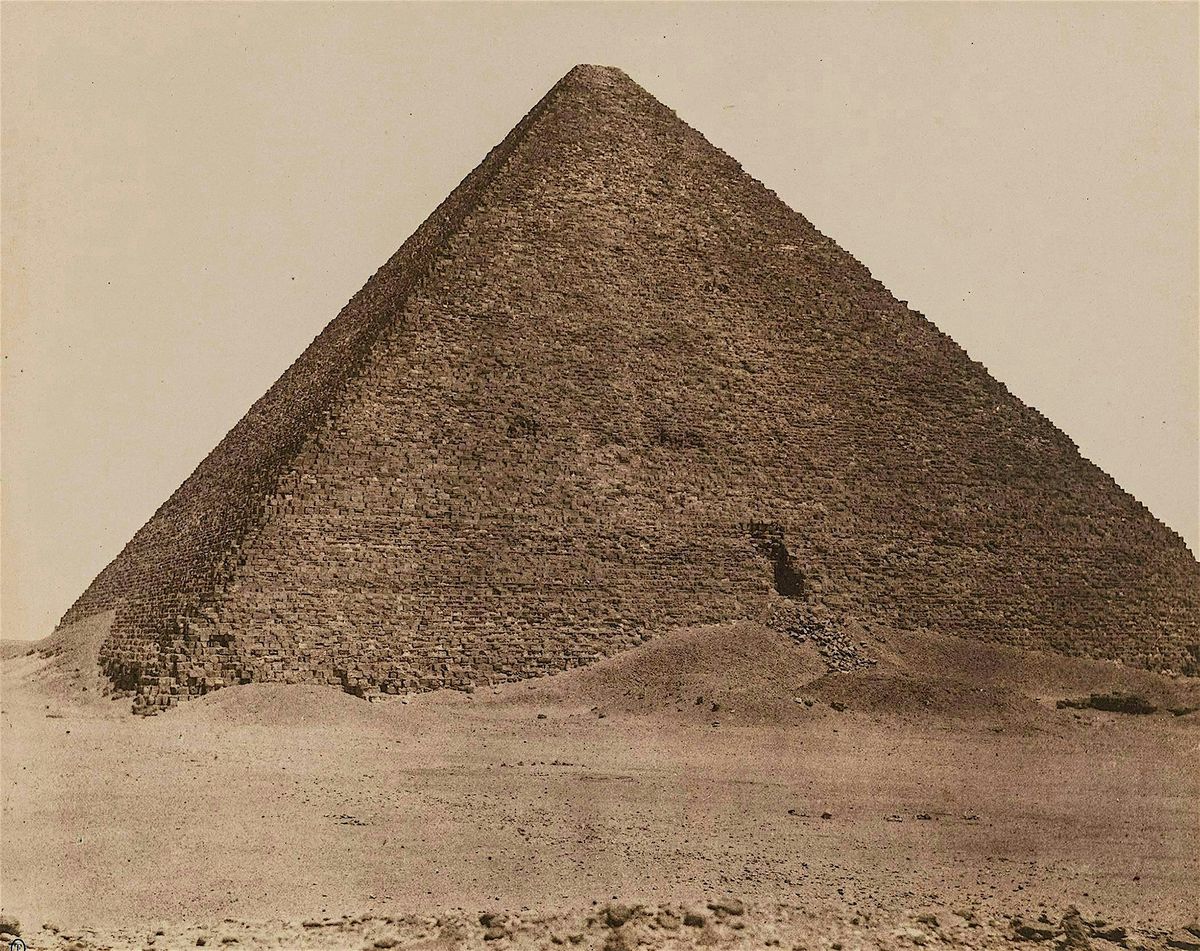 Image credit: Félix Teynard (French, 1817-1892). Pyramide de Chéops (Grande Pyramide) / Égypte / Djizeh (Nécropole de Memphis),(1851-1852). Salt print, 1853-1854, from a paper negative. 24.5 x 30.7 cm mounted on 40.2 x 52.3 cm paper.