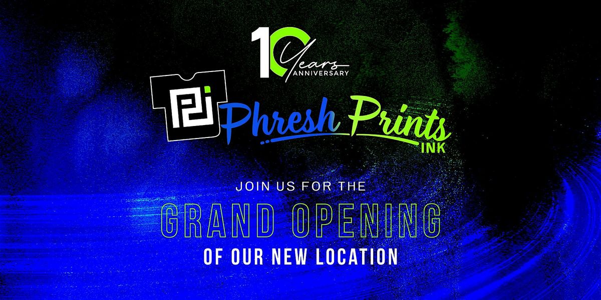 Join us as we celebrate two major milestones for Phresh Prints Ink — the grand opening of our new location and 10 years in business.