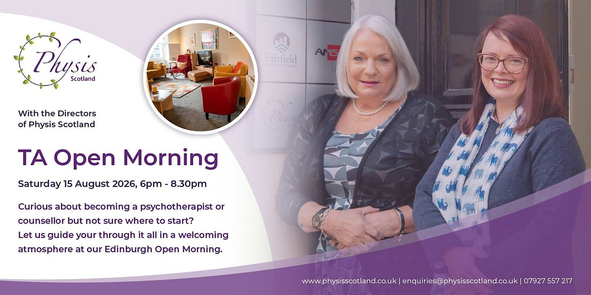 Meet our Physis Scotland Directors, Fiona Firman, Fiona Cook, Kate Simpson and Jon Henderson over a cup of coffee. They’ll share insights into Physis Scotland’s training programs, delve into Transactional Analysis (TA), and show you how our team can support you on your journey to becoming a counsellor or psychotherapist.