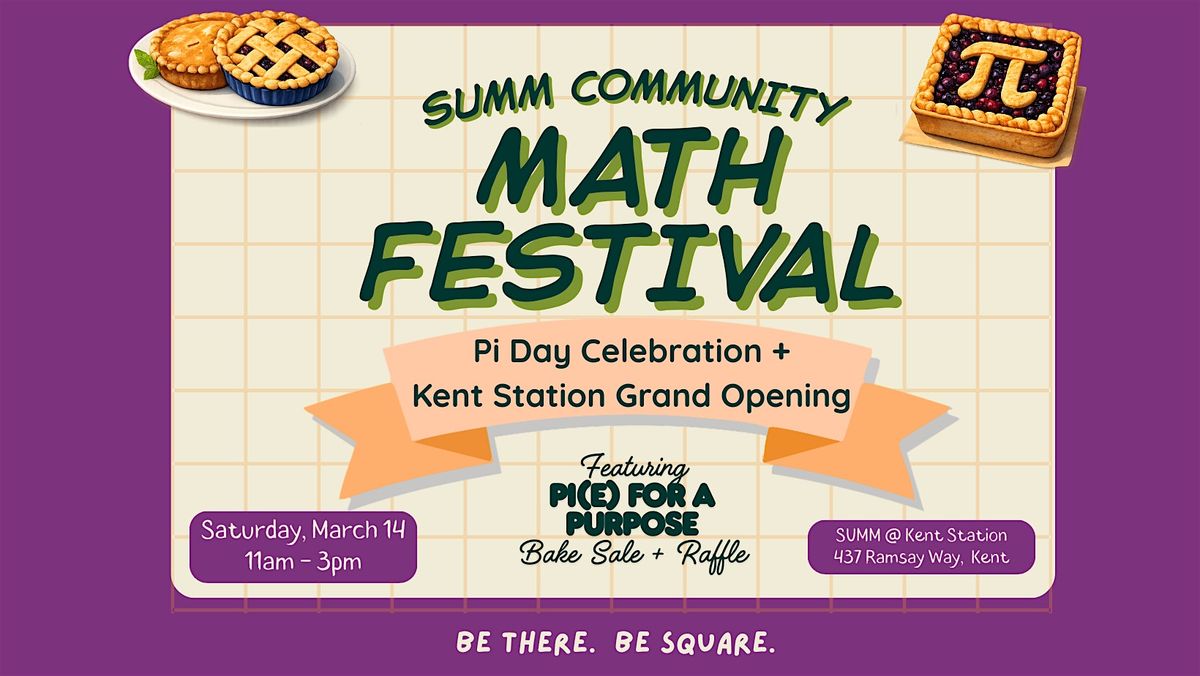 Join us for a joyful celebration of math, community, and curiosity as the Seattle Universal Math Museum (SUMM) opens the doors to its first-ever public-facing space! The SUMM Community Math Festival marks our grand opening at Kent Station and kicks off what will become an annual Pi Day tradition.