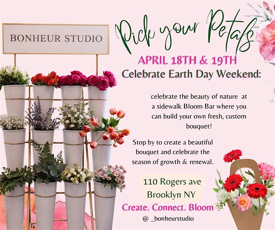 Join us for a beautiful sidewalk bloom experience at Bonheur Studio, where you can handpick your favorite stems and build your own custom bouquet.