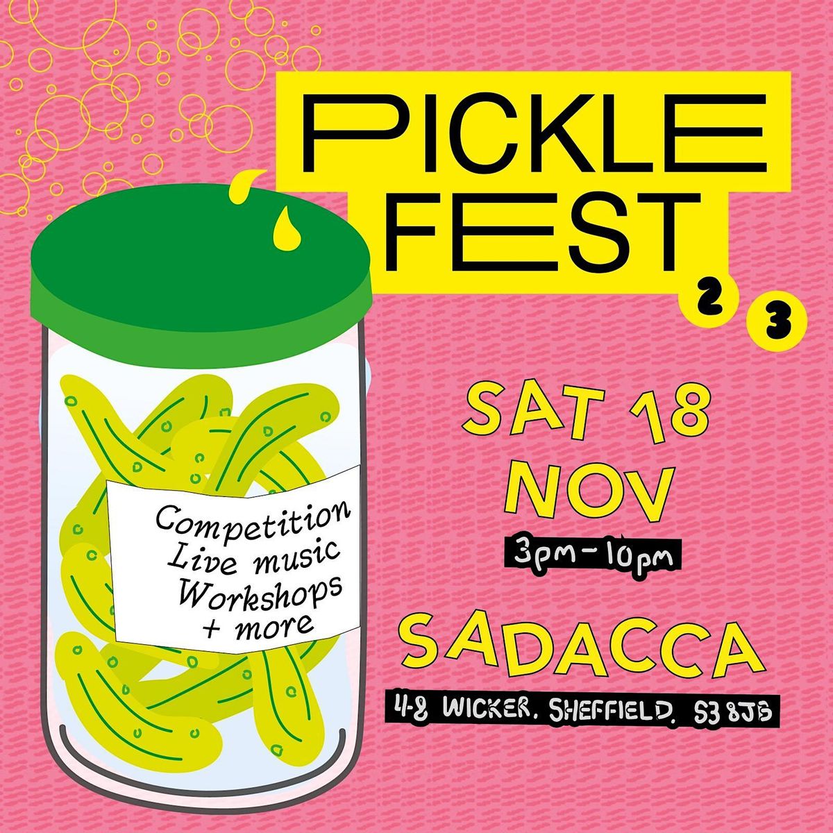 Pickle Fest is 100% volunteer run so we suggest £5 waged / £3 unwaged as the donation for entry and to cover our costs, but any more will feed back into the project! We also don't want price to be a barrier so if you cannot donate now please still come along on the day.