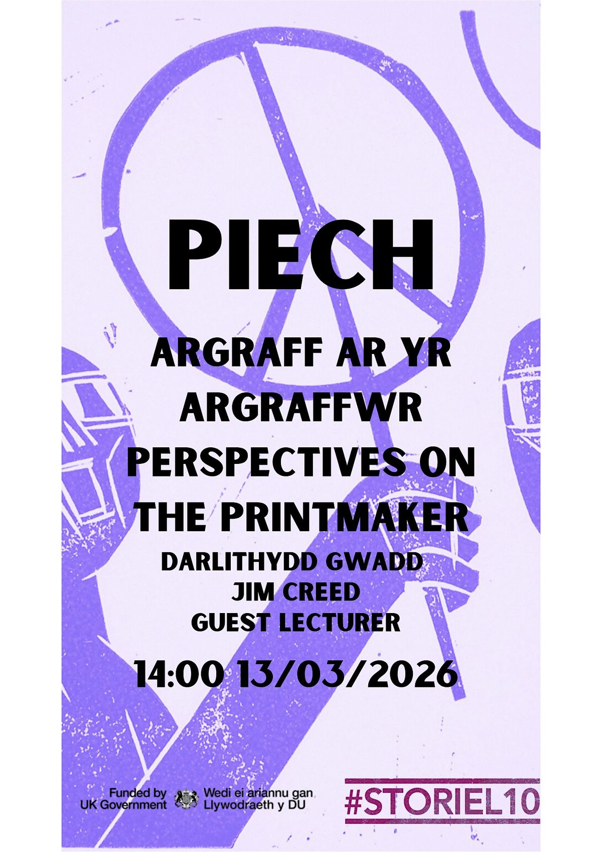 Mae’r artist graffeg a argraffydd Paul Peter Piech yn cael ei adnabod am ei waith dylunio posteri gwleidyddol trawiadol, gyda neges ei waith mor wir nawr ar diwrnod a argraffwyd. Yn enedigol o Brooklyn i rhieni o Wcráin , magwyd Piech yn yr UDA cyn wario rhan sylweddol o’i fywyd yn Gymru, ai flynyddoedd olaf yn Porthcawl. Tra yng Nhymru cariodd mlaen hefo gwaith ymgyrchu a hefyd ymdrochi yn diwylliant Cymraeg a’r iaith i greu corff o waith atyniadol . Fel Rhan o arddangosfa Paul Peter Piech Posteri Heddwch ,mae yn fraint cael gwahodd y Jim Creed hanesydd celf , casglwr a awdurdod ar waith a bywyd y diweddar artist a manylu ar ei waith, ysbrydoliaeth a dylanwad .