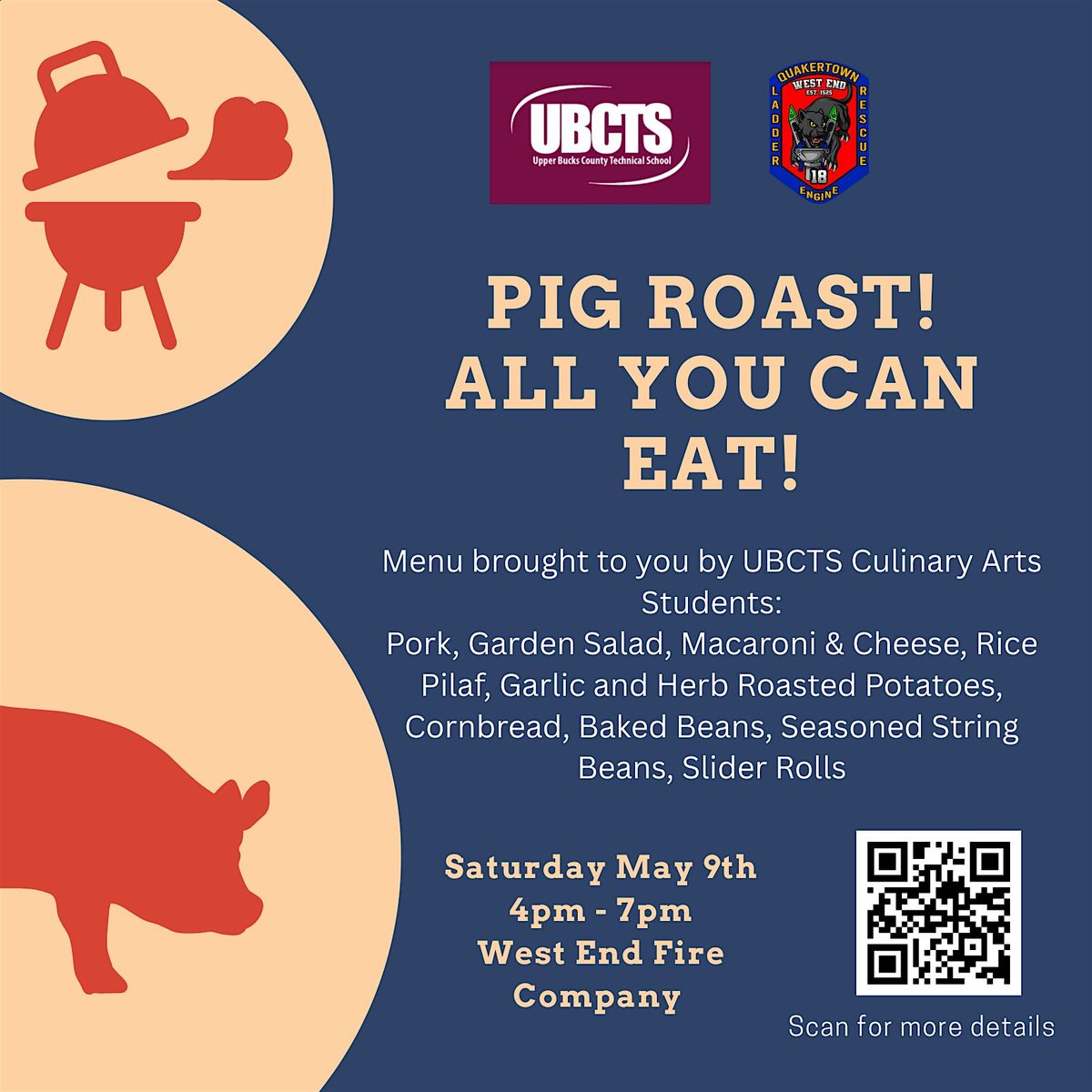 Come join us for a mouthwatering Pig Roast hosted by the West End Fire Company and prepared by the students at Upper Bucks Technical School. This in-person event is your chance to enjoy all the delicious pork and sides you can handle.