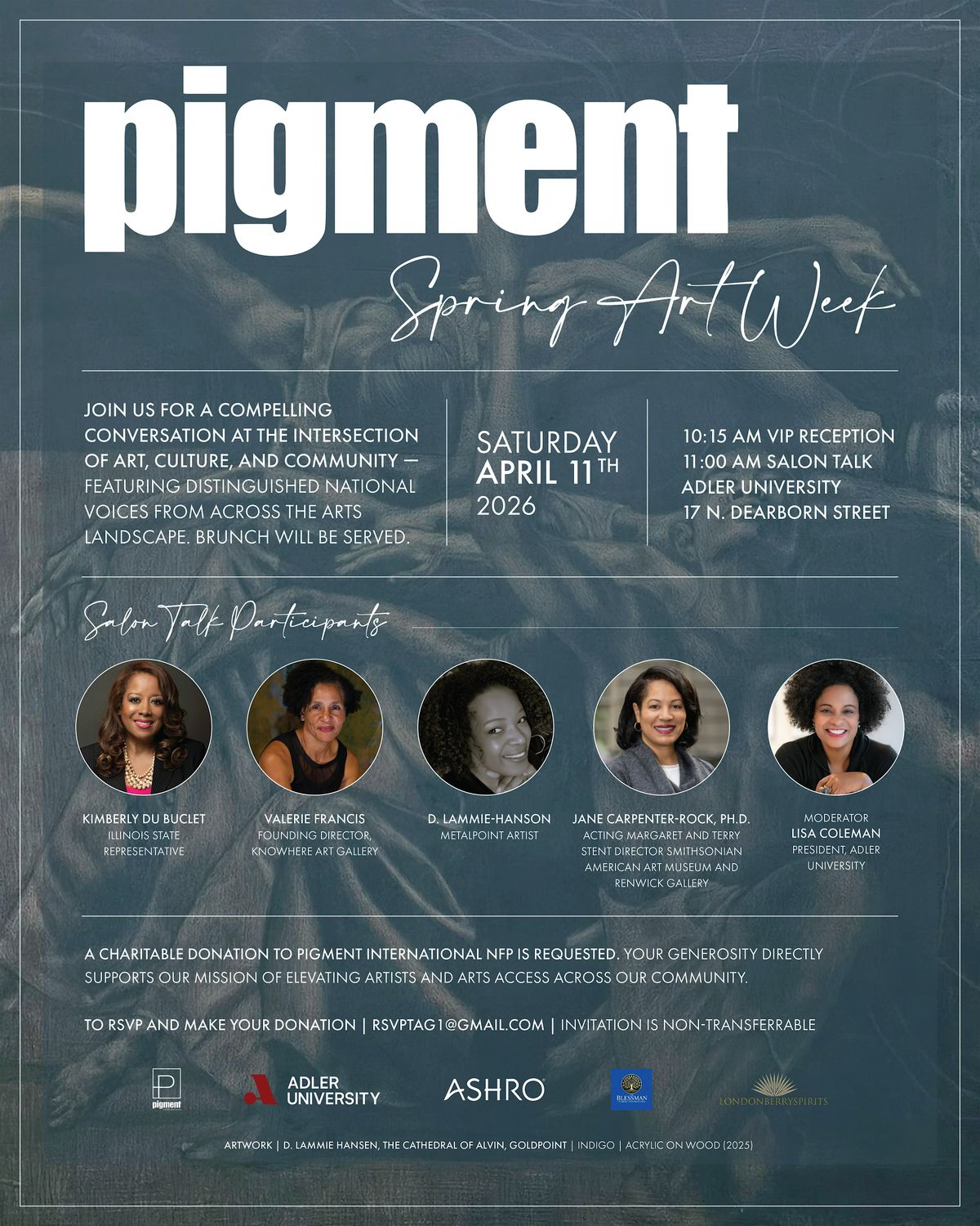 Info: Meet and greet with speakers and artists. View select art curated by Pigment International. Brunch served.