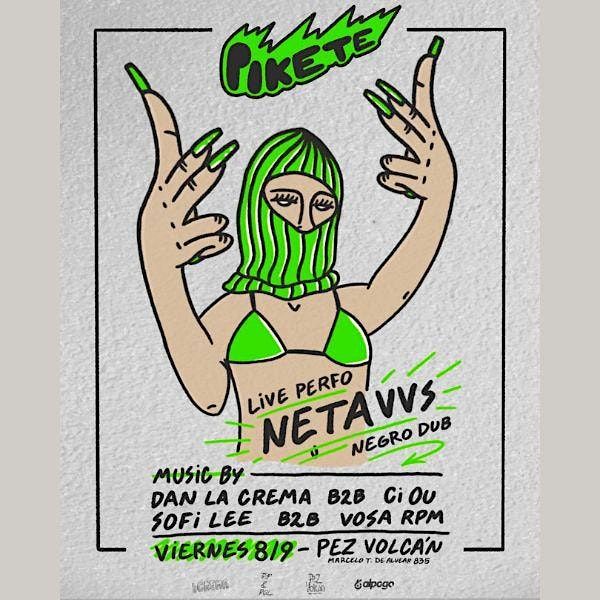 Don't miss out on this incredible event! Mark your calendars and get your tickets now for the PIKETE PARTY ft. NETTA VVS & NEGRO DUB @ PEZ VOLCÁN, CBA. It's going to be a night to remember!
